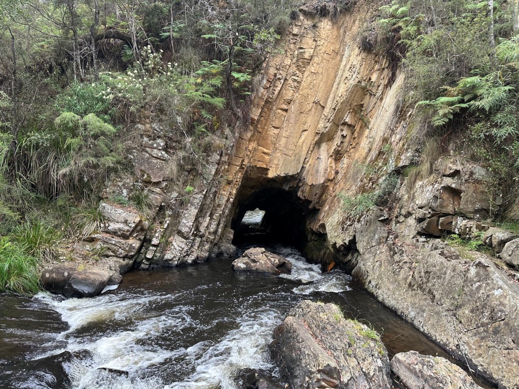 The Big Peninsula Tunnel is a small tunnel used to divert the Yarra river. During the gold rush period, this diversion allowed gold miners to better access the river beds. This is a unique and surreal place where the river runs through this tunnel. It’s just a short 20-minute drive from Warbuton town centre. From the car park, we can access the river from both sides of the tunnel, tunnel inlet and outlet.